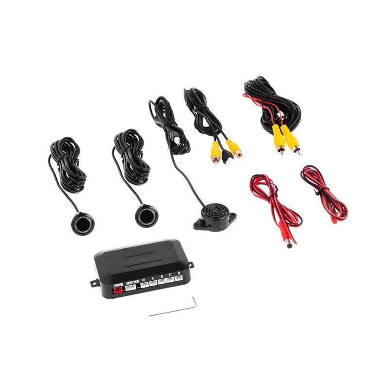 Obsah balenia: kamera v ráme ŠPZ s dvoma cúvacími senzormi, riadiaca jednotka, 2x AV kábel, 2x napájací kábel, bzučiak