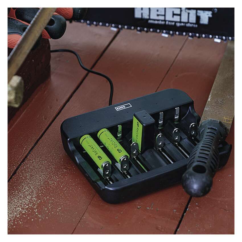 Pri nabíjaní môžete kombinovať batérie drôtové (AA), mikro (AAA), malé monočlánky (C), veľký monočlánok (D)a deväť voltov (9 V). Nabíjačka je prispôsobená na nabíjanie NiCd a NiMH akumulátorov.