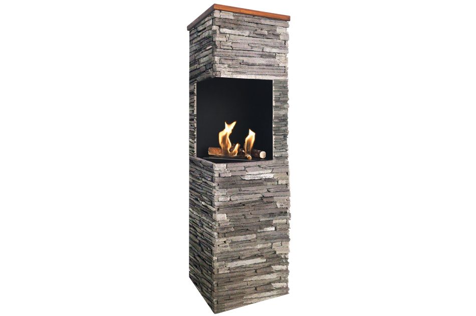 Rohový biokrb Joker si môžete buď položiť na podlahu či podstavec. Jednoduché elegantné tvary a materiál, z ktorého je vyrobený, dávajú biokrbu možnosť dokonale zapadnúť do miestnosti a vytvárať príjemnú atmosféru. Korpus biokrbu je obložený dekoračným kamenným obkladom sivej farby. Na spodku a vrchu biokrbu je umiestnená drevená doska.