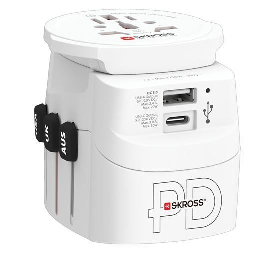 SKROSS cestovný adaptér PRO Light USB AC30PD World, 7A max., USB A+C, PD 30W, UK+USA+Austrálie/Čína