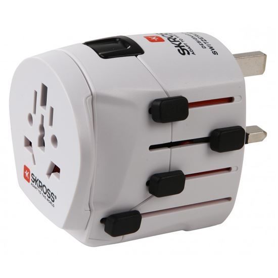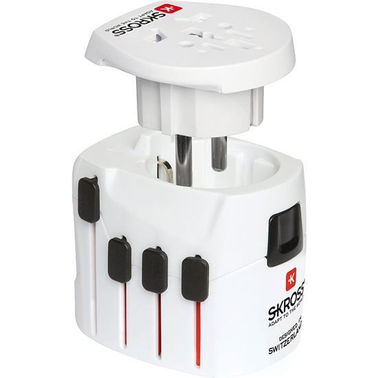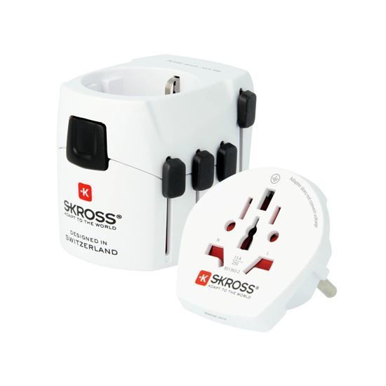 Najvýkonnejší uzemnený adaptér SKROSS PRO - World umožňuje bezpečné pripojenie európskych zariadení vo viac ako 120 krajinách sveta. Vďaka prídavnému nástavcu pre prívodné šnúry z rôznych krajín rozširuje svoju použiteľnosť až na 205 destinácií. Vie dvojpólové aj trojpólové zástrčky a vďaka maximálnej záťaži 7A zvládne aj náročnejšie spotrebiče, ako notebooky alebo cestovné fény.