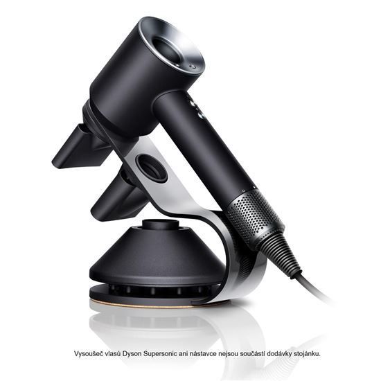 Iba stojanček. Vysúšač vlasov Dyson Supersonic™ ani magnetické nástavce na vyobrazení nie sú súčasťou dodávky stojančeka.