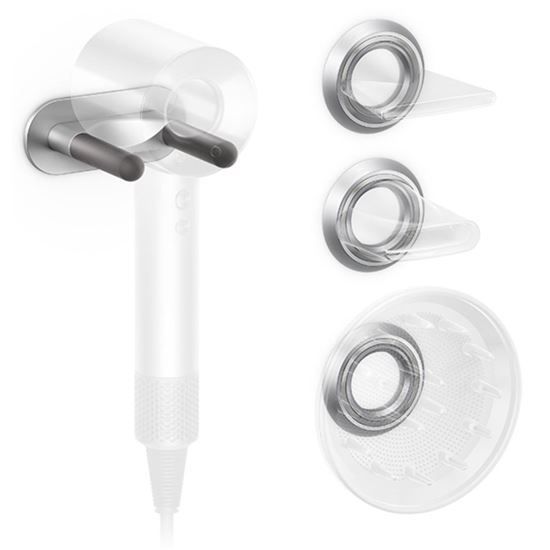 Štýlový úchyt na stenu a navrhnutý pre profesionálny vysúšač vlasov Dyson Supersonic™ a jeho príslušenstvo.