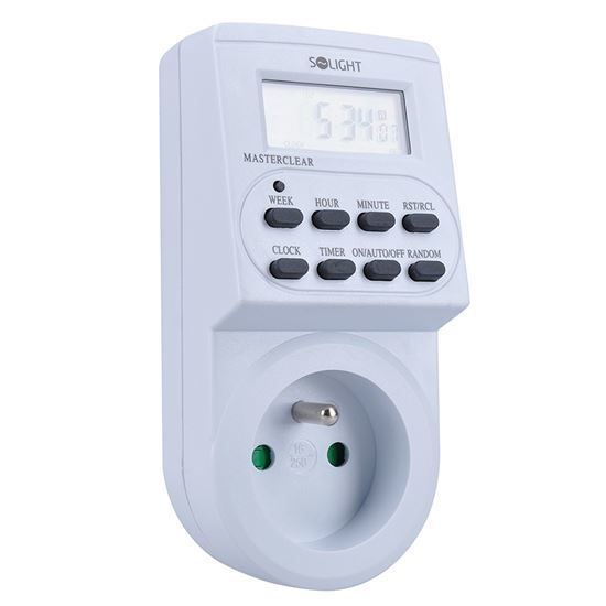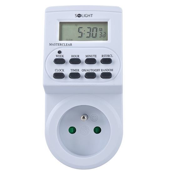 Digitálny časový spínač s LCD displejom umožňuje nastavenie a kombináciu týždenného a denného režimu. Ponúka 8 spínacích cyklov a 9 režimov opakovania vrátane náhodného spínania. Je vybavený detskou poistkou a pracuje s napätím 230 V/16 A.