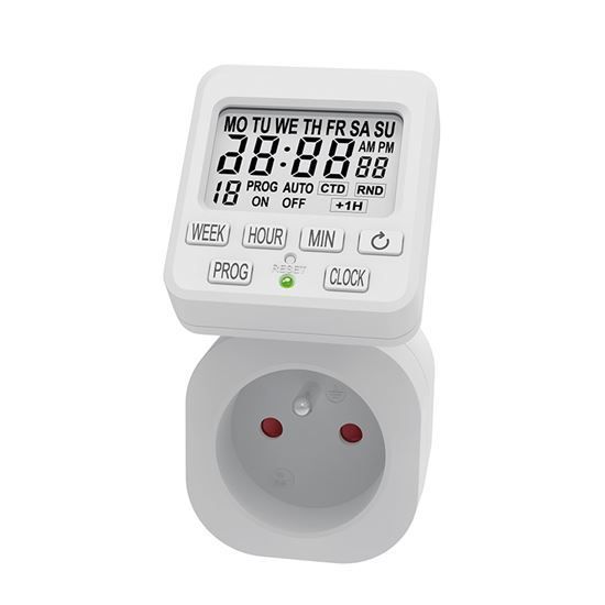 Digitálny programovateľný časovač s detskou poistkou, ktorý môže byť výborným pomocníkom na spúšťanie vašich elektrospotrebičov v správnom čase. Časovač je vybavený možnosťou nastavenia pre 18 spínacích cyklov a 15 režimov opakovania podľa vami požadovaných dní a hodín. Ďalšou možnosťou je režim náhodného časového spúšťania alebo odpočítavania.