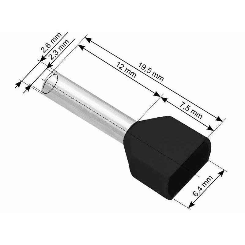 Dutinka izolovaná krimpovacia 2x1,5/12 čierna (100ks)