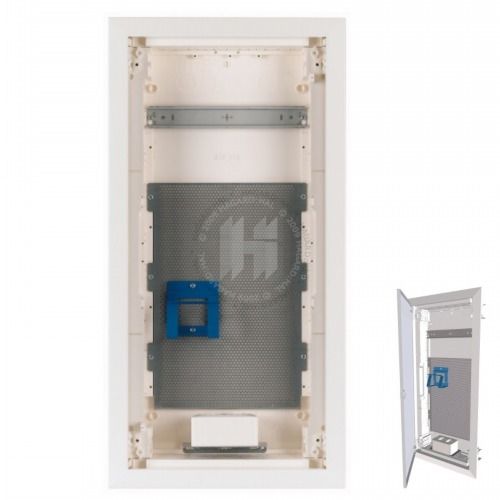 1. rada DIN lišta, 2. až 3. rada s perforovaným montážnym panelom pre komunikačné prístroje s elektrickou dvojzásuvkou.