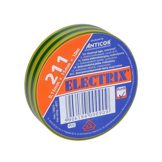 Solight izolačná páska, 15mm x 0,13mm x 10m, žltozelená