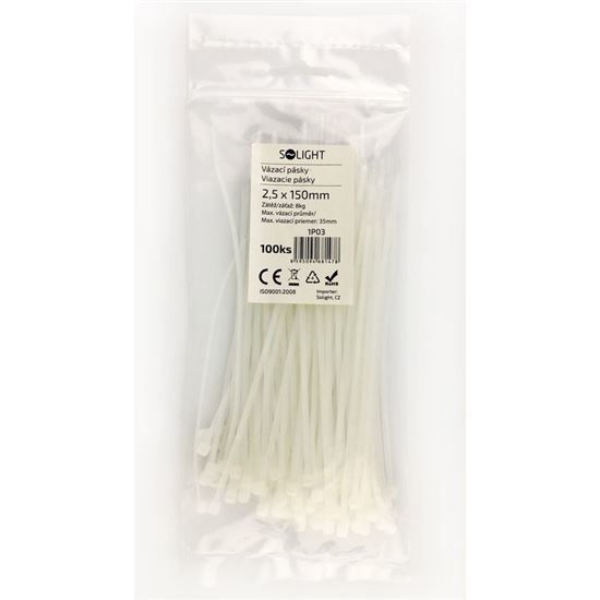 Solight viazacie nylonové pásky, 2,5 x 150mm, natural, 100ks