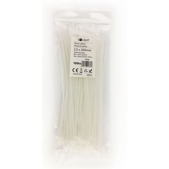 Solight viazacie nylonové pásky, 2,5 x 200mm, natural, 100ks