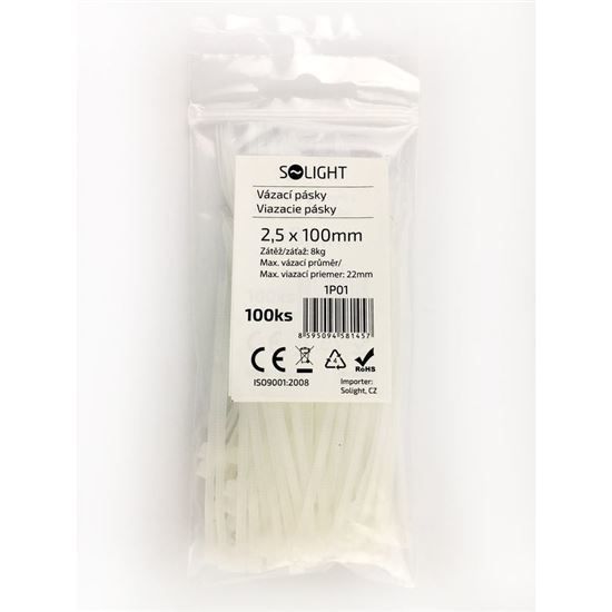 Solight viazacie nylonové pásky, farba natural, 100ks, 2,5 x 100mm