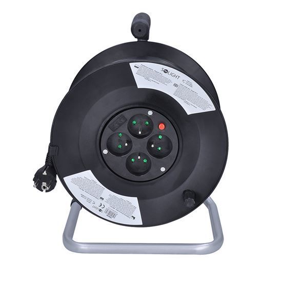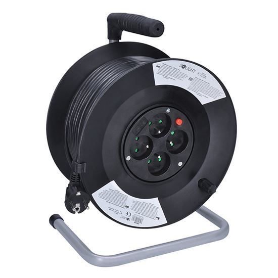 Solight predlžovací prívod na bubne, 4 zásuvky, 50m, čierny kábel, 3x 1,5mm2