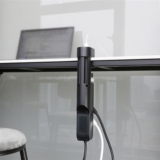 Nabíjacie porty USB-A a USB-C s podporou rýchleho nabíjania sú umiestnené na čele predlžovacieho prívodu, a sú tak ľahko dostupné priamo z pracovnej plochy. Tri zásuvky 230V sú elegantne ukryté pod hranou stola, takže nenarúšajú vizuálnu čistotu a neprekážajú na pracovnom mieste. Zásuvkový blok je možné v prípade potreby namontovať aj obrátene – zásuvkami nahor.
