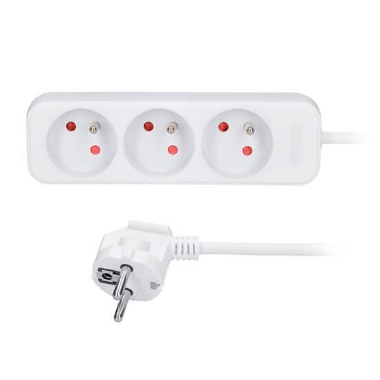 Praktický bílý prodlužovací kabel s délkou 1,5 metru a třemi zásuvkami umožní přivést elektrickou energii tam, kde není k dispozici pevná zásuvka. Ideální pro domácí i kancelářské využití.