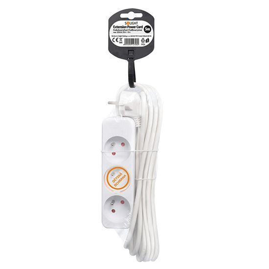 Solight predlžovací prívod, 3 zásuvky, biely, 5m