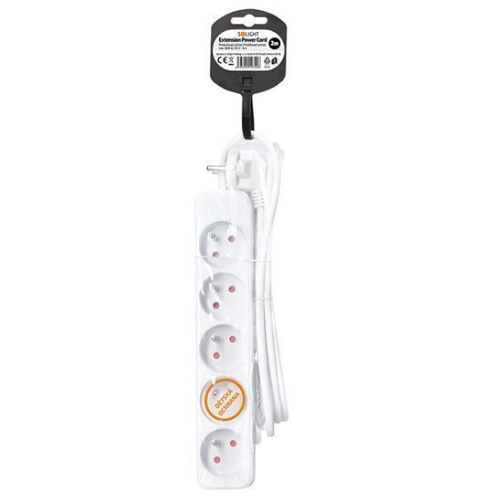 Solight predlžovací prívod, 5 zásuviek, biely, 2m