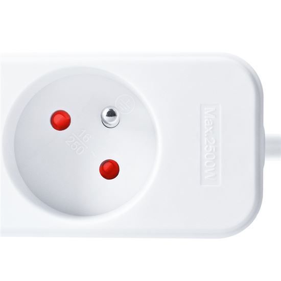 Přívod je navržen pro maximální zátěž 2300 W, tzn. proudové zatížení 10 A při napětí v síti 230 V~. Zajišťuje stabilní přenos energie pro běžné elektrospotřebiče. Zásuvky jsou vybaveny dětskými pojistkami pro maximální bezpečnost.