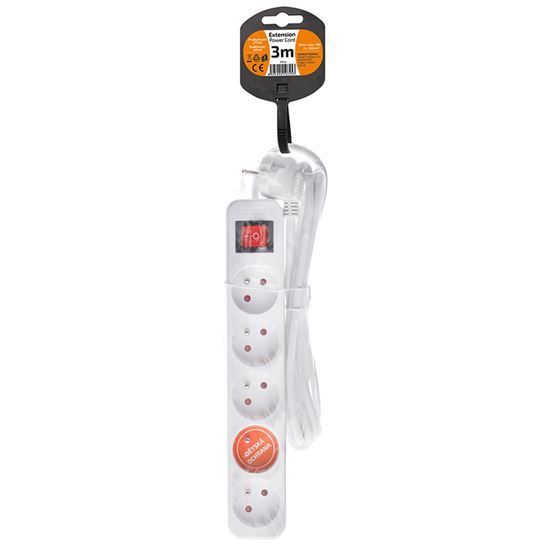Solight predlžovací prívod, 5 zásuviek, biely, vypínač, 3m