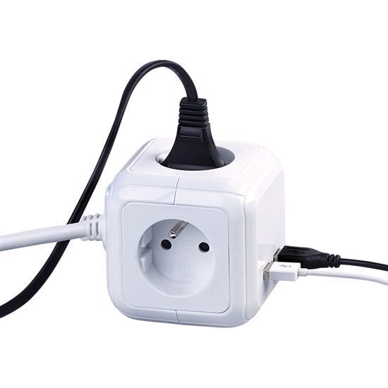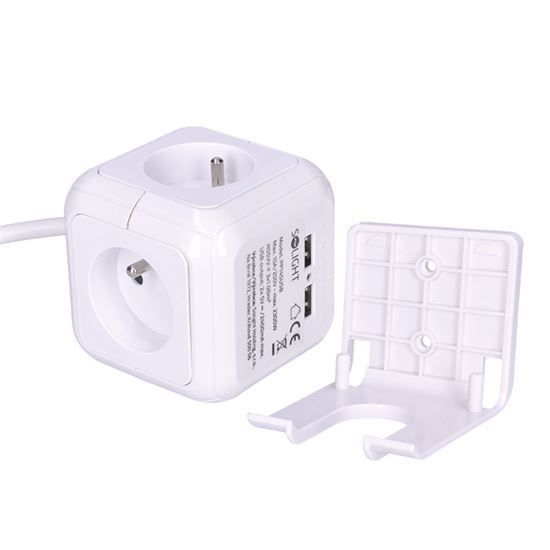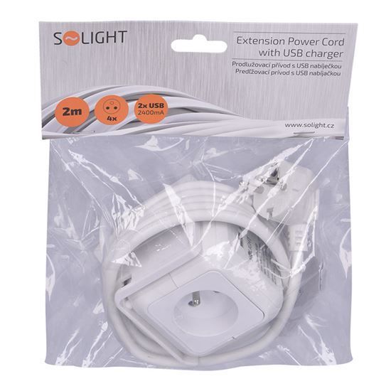 Solight predlžovací prívod kocka, 4 zásuvky 230V + 2x USB max. 2400mm, kábel 2m