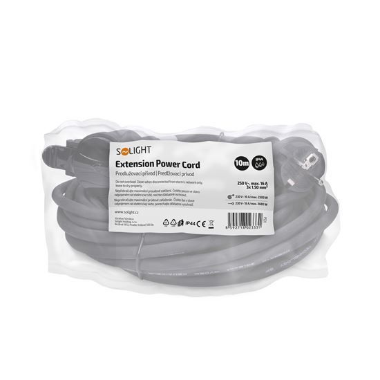Solight predlžovací prívod - spojka, 1 zásuvka, 10m, 3 x 1,5mm2, gumová, čierna