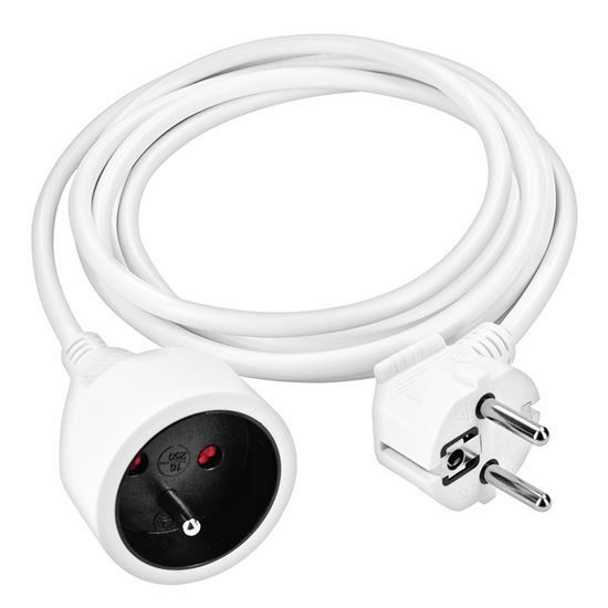 Kompaktní bílý prodlužovací kabel s délkou 2 metry a jednou zásuvkou je ideální pro jednoduché prodloužení elektrické energie v domácnosti, kanceláři nebo dílně. Vhodný pro připojení samostatného zařízení mimo dosah pevné zásuvky.