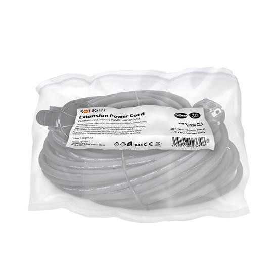 Solight predlžovací prívod - spojka, 1 zásuvka, 30m, 3 x 1,5mm2, gumová, čierna