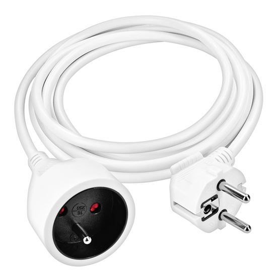 Kompaktní bílý prodlužovací kabel s délkou 3 metry a jednou zásuvkou je ideální pro jednoduché prodloužení elektrické energie v domácnosti, kanceláři nebo dílně. Vhodný pro připojení samostatného zařízení mimo dosah pevné zásuvky.