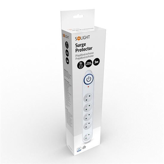 Solight prepäťová ochrana, 150J, 5 zásuviek, 3m, biela
