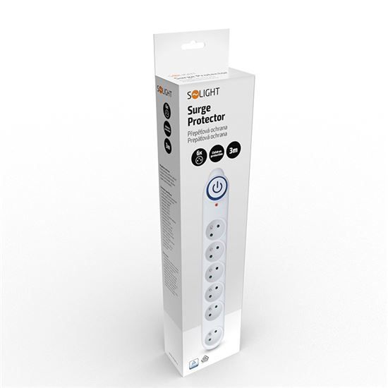 Solight prepäťová ochrana, 150J, 6 zásuviek, 3m, biela