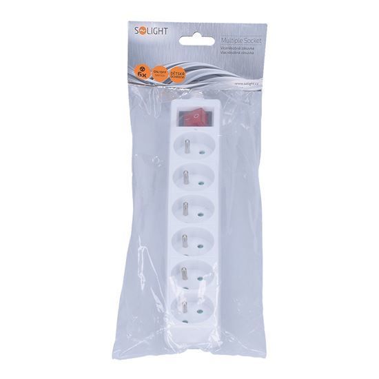 Solight viacnásobná zásuvka, 6 zásuviek, vypínač