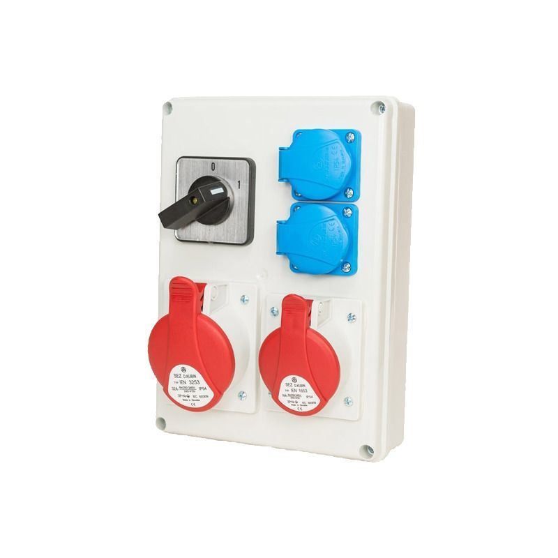 Zásuvková rozvodnica 1x32A, 1x16A, 2x250V, vypínač 0-1, IP44