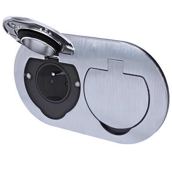 Vrchný kryt zásuvky je vyrobený z odolnej zinkovej zliatiny, ktorá zaisťuje pevnosť a zároveň ochranu proti korózii. Na povrchu nie sú viditeľné žiadne skrutky – montážne otvory zostávajú skryté pod každým viečkom. Vďaka tomu pôsobí zásuvka elegantne a profesionálne a zároveň sa ľahko čistí.