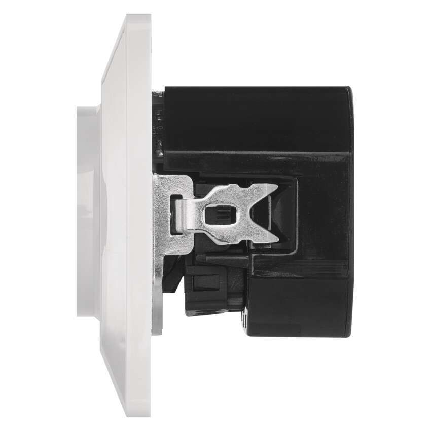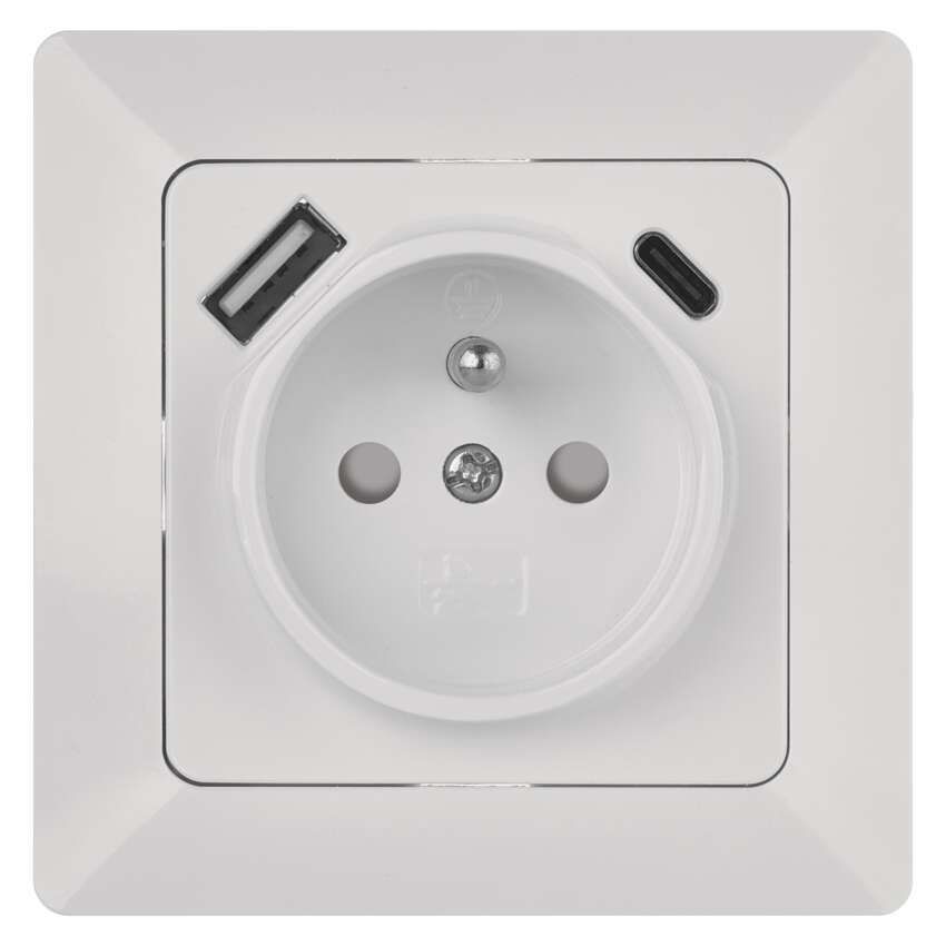 Jedna zásuvka s ochranným kolíkom s nabíjaním cez USB. Výstup USB 5 V DC 3 A max. Zabudovaná hĺbka 41 mm. Odporúča sa používať inštalačné krabice s minimálnou hĺbkou 60 mm a hlbšie. Nemožno použiť na prenos údajov.