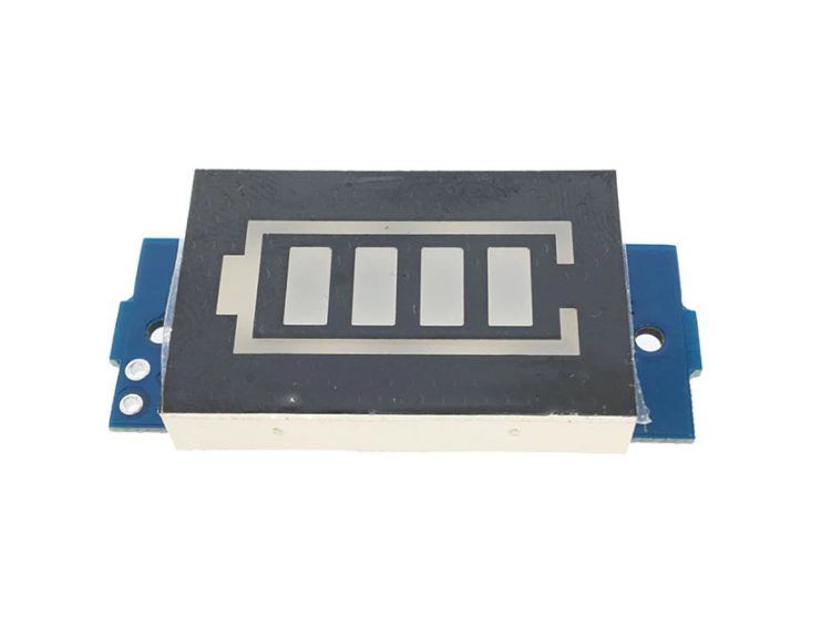 Grafický LED indikátor, ktorý zobrazuje kapacitu batérie 25% (9,9 V), 50% (10,8 V), 75% (11,7 V) a 100% (12,6 V).