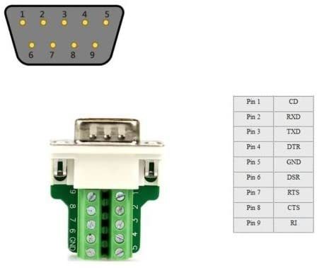 Konektor DB-9, samec, bežne používaný pre zbernicu RS232.