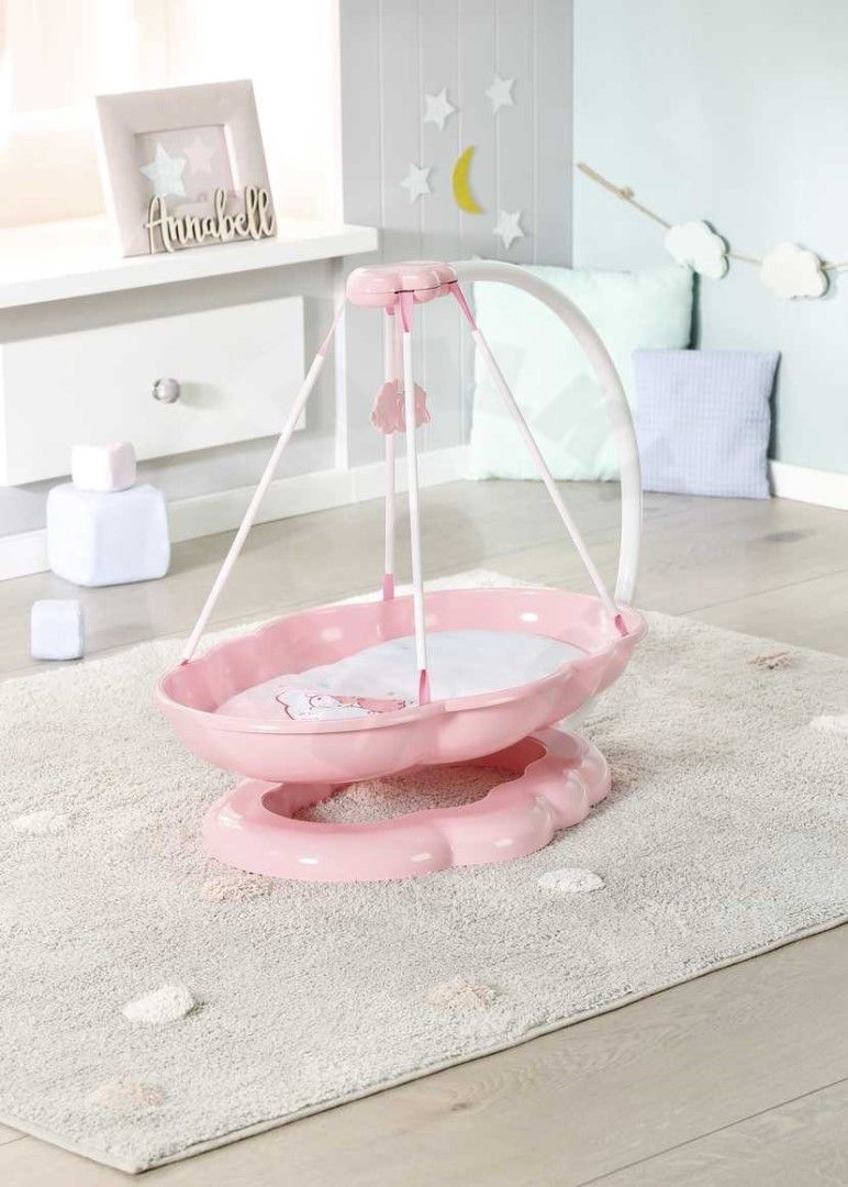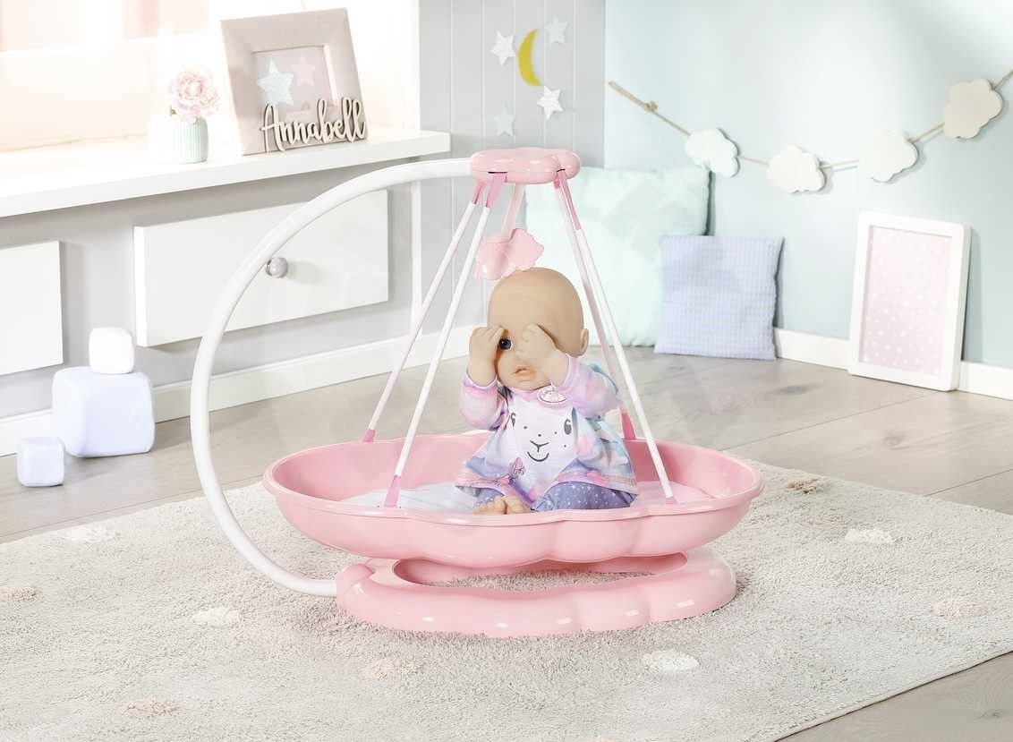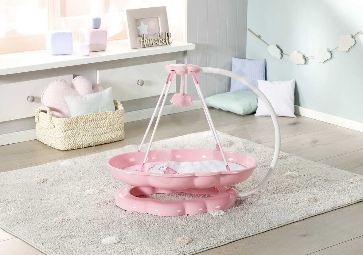 V tejto krásnej hojdačke sa Baby Annabell spinká ako na naozajstnom obláčiku na nebi. Perfektne sa hodí pre popoludňajší spánok aj pre malé zdriemnutie. Vďaka špeciálnemu zaveseniu a konštrukcii sa postieľka hojdá sama od seba bez akejkoľvek elektroniky. Stačí obláčikom mierne zhupnúť a Baby Annabell už mieri do ríše snov. Aby mala Baby Annabell sny čo najsladšie, je pre ňu na obláčiku pripravený mäkký matrac. Pri zaspávaní pomôže ovečka zavesená z obláčika nad postieľkou. Jej pozorovanie funguje podobne ako počítanie ovečiek.