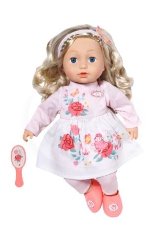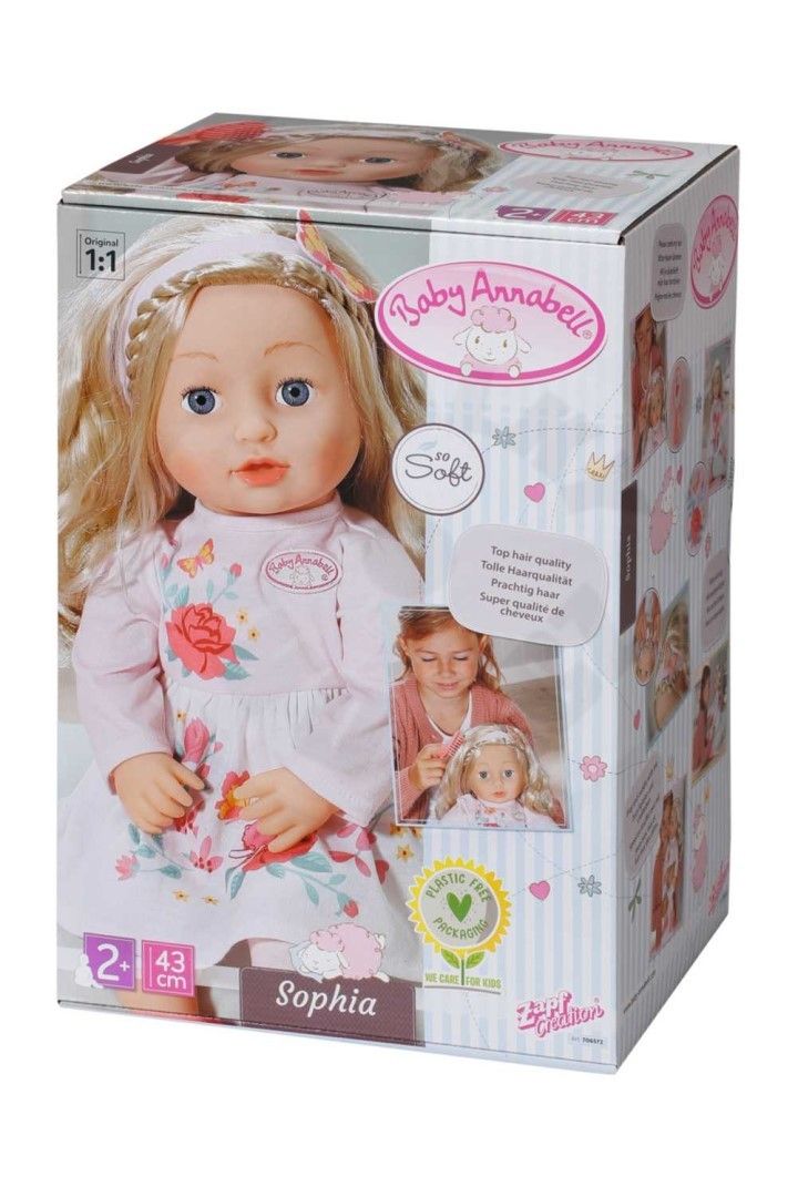 Baby Annabell Sophia je bábika veľkosti 43 cm. Oblečená je do šiat, legín a topánočiek. Súčasťou je čelenka a kefa na vlasy.