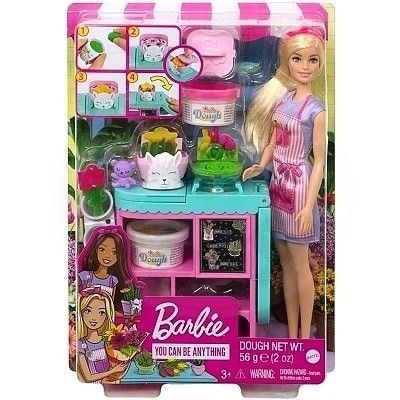Prevádzkujte kvetinárstvo s bábikou a sadou kvetov Barbie!? Obsahuje kvetinársku bábiku Barbie, stanicu na výrobu kvetov, 3 farby cesta (žltú, ružovú a zelenú), 2 vázy, formu, čistiaci nástroj a doplnok plyšového medvedíka na hranie a kreatívne vyjadrenie! Bábika kvetinárka Barbie v roztomilom pruhovanom kabátiku s vreckami na náradie je pripravená vytvárať krásne kytice pre svojich zákazníkov pomocou stroja na výrobu kvetov a cesta. Ak chcete vyrobiť kvety, vložte cesto do stredu pracovnej stanice a potom na ňu položte „vázu“. Zatlačte na bočnú páku a sledujte, ako sa kvety objavujú vo váze!? Použite rôznofarebné cesto na vytvorenie rôznofarebných kvetov a použite formu na výrobu ďalších kvetov! ?Preskúmajte svet kreatívne hry a zábavy s rozprávaním príbehov s bábikou a sadou kvetov Barbie a sledujte, ako sa zákazníci zoradia pre krásne kvety! Je to skvelý darček pre deti od 3 rokov, najmä pre tých, ktorí milujú kvety, prírodu a vytváranie krásnych kvetinových aranžmánov!