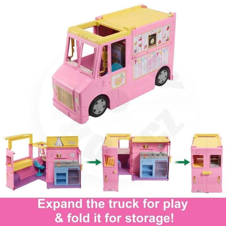 Je skvelou voľbou pre Barbie®, ktorá chce rozbehnúť vlastné podnikanie. Bábika nie je súčasťou balenia. Farby a dekoratívne prvky môžu líšiť. Súprava Barbie® Furgonetka s limonádou obsahuje 25 dielikov , takže si môžete pripraviť tie najlepšie nápoje po celom meste.