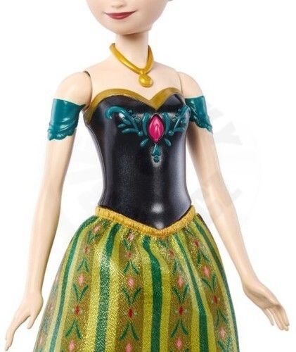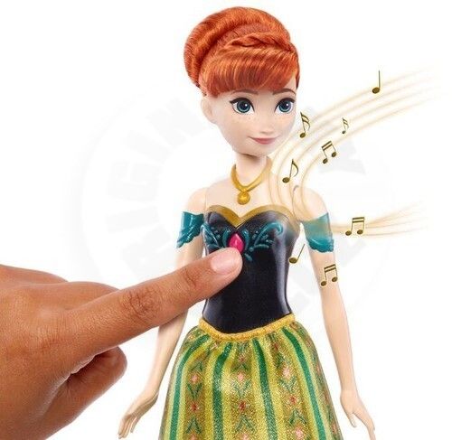 Táto bábika Anna, inšpirovaná milovanou animovanou postavičkou, spieva svoju slávnu pieseň z Disney's Frozen! Deti môžu stlačiť tlačidlo a bábika Anna zaspieva úryvok svojej piesne v angličtine: „For the First Time in Forever“. Bábika Anna nosí svoj charakteristický zámocký obleček z prvého filmu Disney Frozen s odnímateľnou mäkkou sukňou Má tiež jemné, kefovateľné vlasy a autentický účes z filmu Je to perfektný darček pre deti, aby si mohli zahrať svoje obľúbené scény z Disney Frozen alebo vymyslieť vlastné vzrušujúce dobrodružstvo!