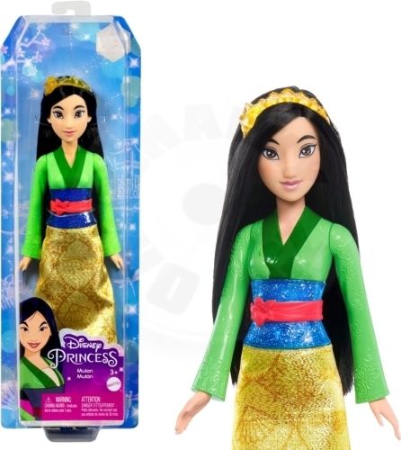 Táto kolekcia bábik Disney Princess prináša obľúbené rozprávkové princezné a rozprávkové hrdinky. Bábika princezná Mulan má kĺbové telo, krásne dlhé vlasy, trblietavý tvarovaný živôtik a odnímateľnú trblietavú sukňu z mäkkého materiálu s jedinečnou potlačou charakteristickou pre jej rozprávku.