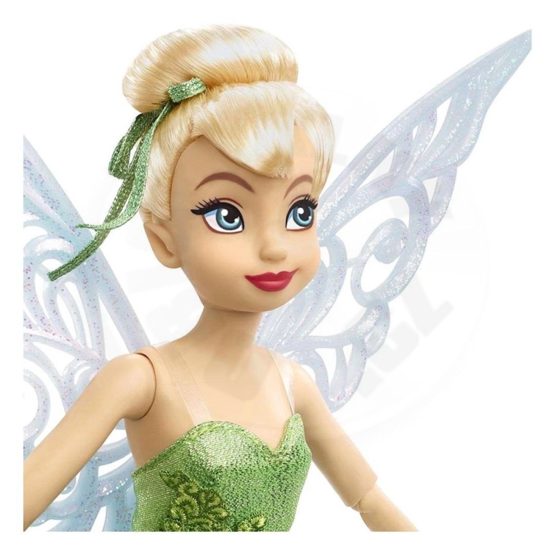 Aby bol jej kúzelný vzhľad dovŕšený, sú vlasy Tinker Bell zošnurované elegantnou bielou stuhou a držia na nich iskrivú striebornú tyčinku. Vďaka krásnej základni pre bábiky (súčasťou balenia) môžu fanúšikovia Disney vytvárať jedinečné lietajúce pózy s Tinker Bell pre maximálnu hru a show.