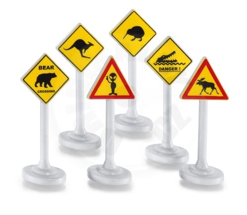 SIKU Blister - Dopravné značky medzinárodnej 6ks. Cestné značky na vidieku vás upozornia na zvýšenie pozornosti pri jazde. Po komunikácii sa môže pohybovať dobytok alebo voľne žijúce zvieratá. S vozidlami SIKU sa deti hrajú po celom svete. Je teda zrejmé, že dopravné značky varujú pred rôznymi druhmi zvierat, ktoré sa pohybujú v blízkosti cesty ako sú napríklad medvede, losy, klokany, kivi alebo krokodíly. Značky SIKU sú vyrobené z vysoko kvalitného plastu, sú odolné a stabilné. Vďaka medzinárodným výstražným značkám môžu vozidlá SIKU a SIKUWORLD pokojne pokračovať v jazde a objavovať cudzie krajiny a ďaleké kontinenty. Vek: 3+.