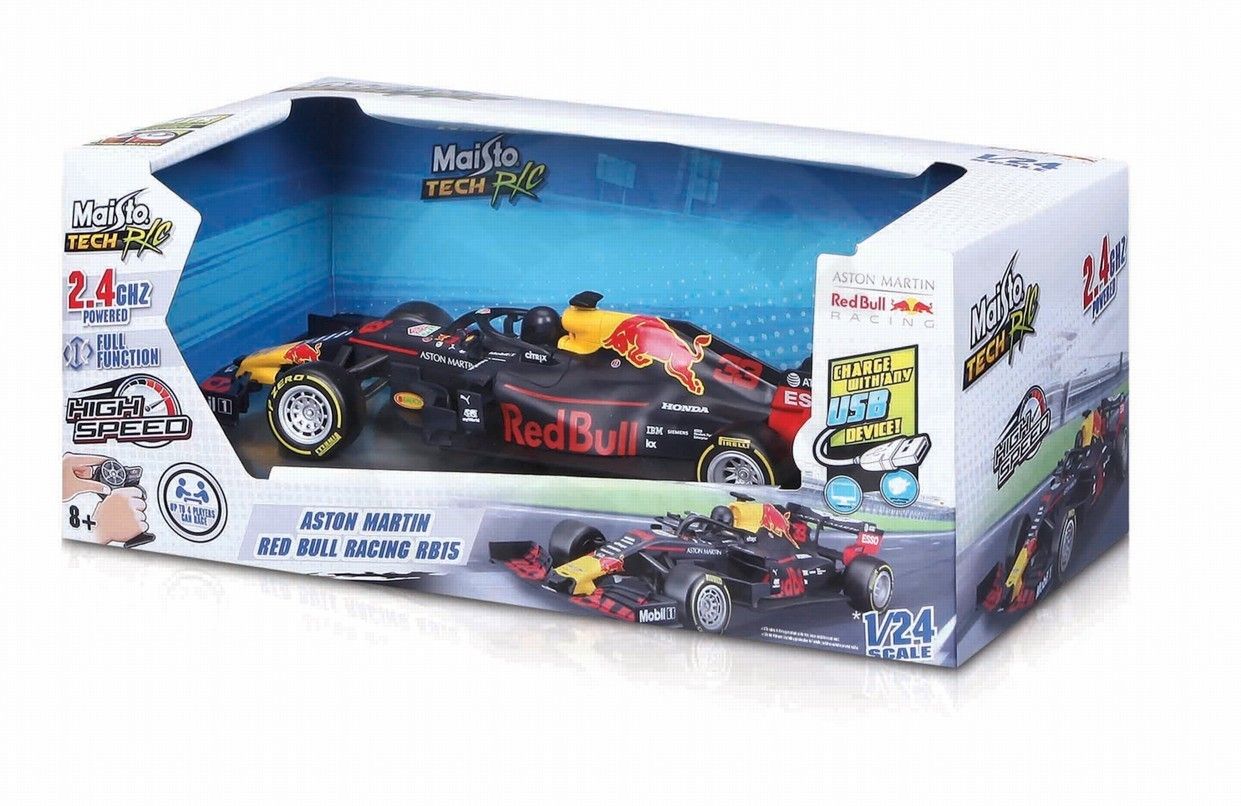 Red Bull RB15 (2019). Model závodnej formule na diaľkové ovládanie od značky Maisto. Model je v mierke 1:24. Vstavaná lítiová batéria, ktorá sa dobíja pomocou priloženého USB kábla. Ovládač je na 2xAAA batérie, ktoré sú súčasťou balenia. Dosah ovládača až 35m. Doba nabíjania 45 minút. Rozmery balenia: 29,2x12x15,2cm. Vek: 8+