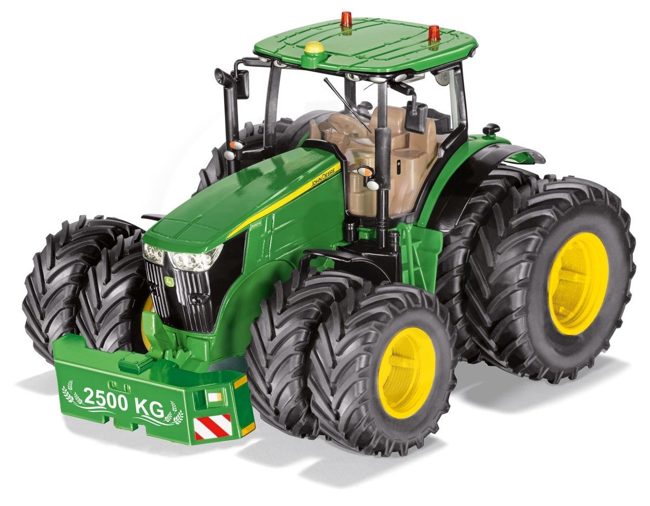 Model traktora John Deere 7290R vás úplne nadchne a to nielen robustným autentickým spracovaním z kovu s plastovými časťami, ale aj diaľkovo riadenými funkciami, ktoré je možné ovládať pomocou aplikácie Siku Control v telefóne. Okrem troch mechanických funkcií je možné tiež diaľkovo zapínať svetlá, aktivovať blinkre a spustiť majáčky. Model ďalej obsahuje predný držiak namiesto závažia, sklopné zrkadlá a dvojité kolesá s pneumatikami (vonkajšie kolesá sú pripevnené pomocou jedinečného magnetického ráfika a je možné ich demontovať). Model môže byť tiež vybavený ďalším príslušenstvom z radu Siku 1:32. Prevádzka modelu je na ceruzkové batérie.