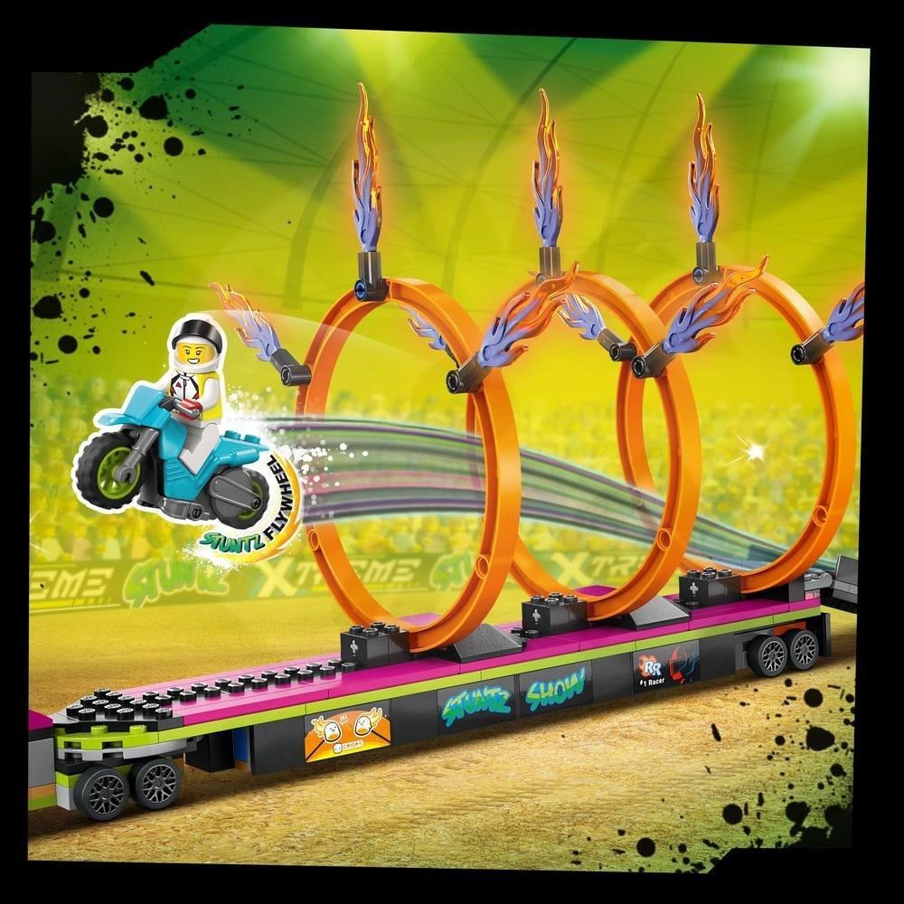 • Stavebnice LEGO® City Stuntz ponúkajú priestor pre zábavné kaskadérske predstavenia a súťaže. • Súčasťou je ťahač, 3 ohnivé kruhy, kaskadérska motorka a 3 minifigúrky. meria cez 9 cm na výšku, 18 cm na dĺžku a 9 cm na šírku. • Hra môže začať okamžite – táto stavebnica LEGO® City Stuntz nevyžaduje batérie.