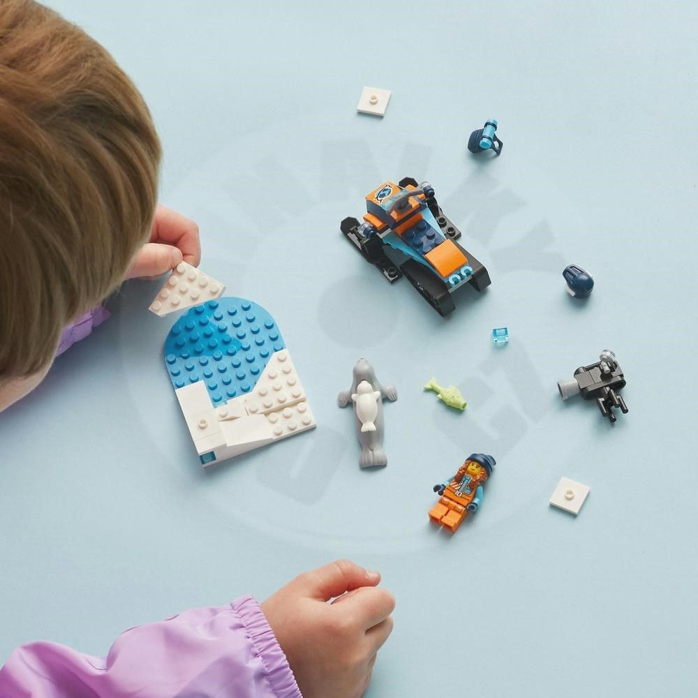 • Stavebnica LEGO® City Arktický snežný skúter pre deti od 5 rokov • Súčasťou je snežný skúter, scéna z Arktídy, minifigúrka prieskumníka a 2 figúrky tuleňov • Snežný skúter má pásy, lyže a odnímateľnú kameru • Stavebnica meria 5 cm na výšku, 8 cm na dĺžku a 5 cm na šírku •Medzi doplnkami pre minifigúrky nájdete kameru a helmu • Ukladajte si postup, približujte a otáčajte model v 3D pomocou aplikácie LEGO® Builder • Užite si hranie bez obmedzenia a kombinujte stavebnice z radu LEGO® City •