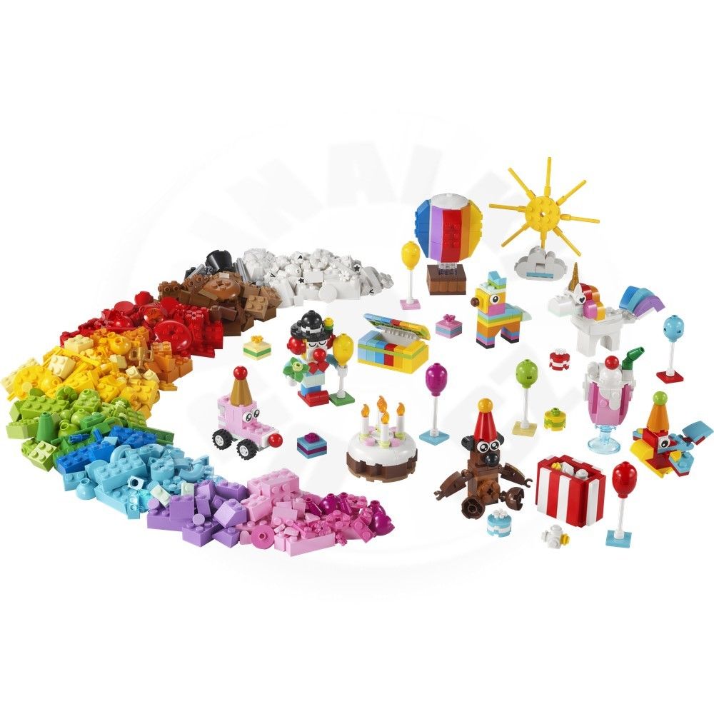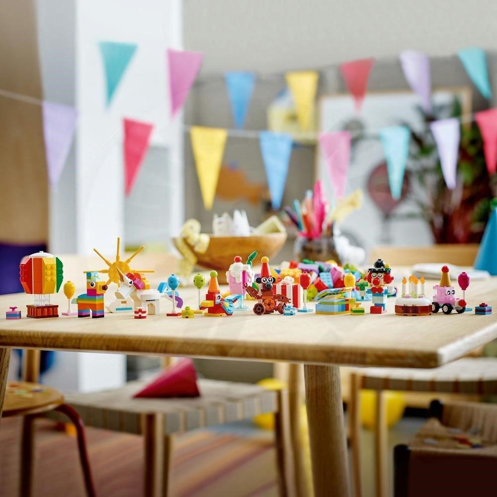 • Zábavná stavebnica pre deti od 5 rokov, ktorú môžu zdieľať s kamarátmi a rodinou • Obsahuje 900 jasne sfarbených kociek a návody na 12 modelov na motívy oslavy • Hráči môžu vo dvojiciach stavať napríklad jednorožca alebo klauna • Rad LEGO® Classic otvára malým staviteľom bránu do sveta kreatívneho sebavyjadrenia • Dieliky LEGO® spĺňajú najvyššie odborové štandardy kvality • Kocky a dieliky LEGO® spĺňajú prísne bezpečnostné štandardy