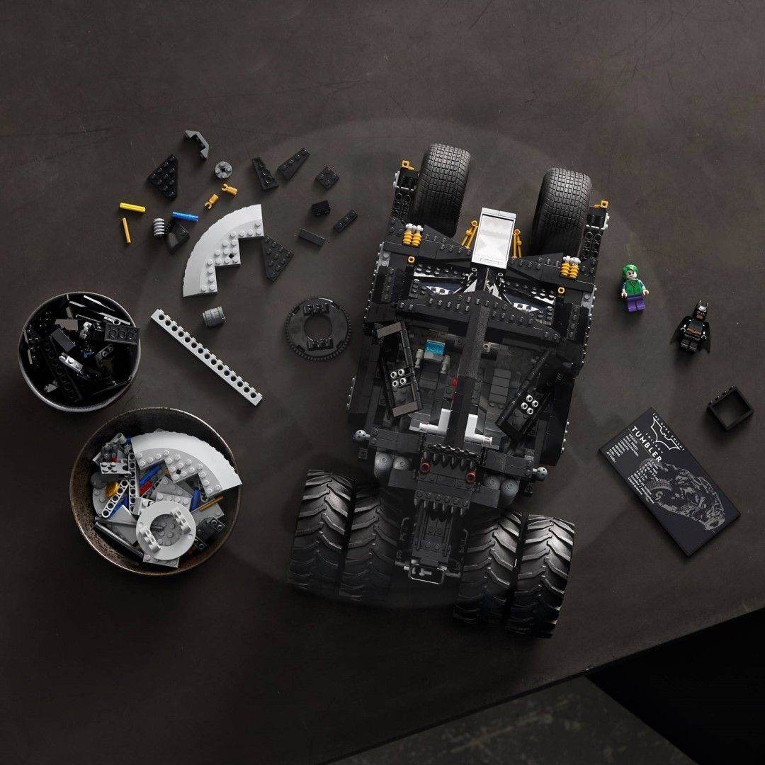 Súčasťou sú aj minifigúrky Batmana a Jokera s podstavcom. Robustný podstavec vám umožní vystaviť si hotový model v jeho plnej kráse. Replika vozidla Tumbler vám tak bude robiť radosť dlho potom, čo budete s prácou hotoví.