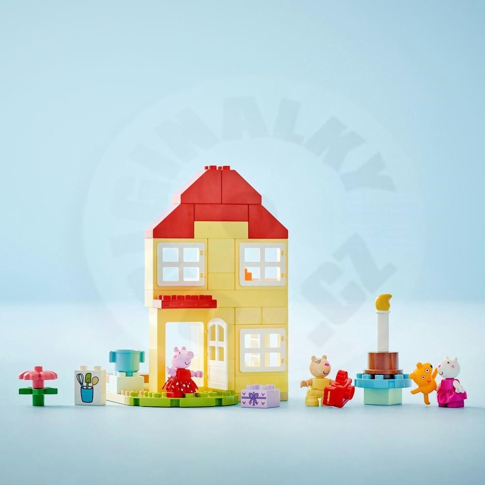 • Malé deti si užijú oslavu so stavebnicou Prasiatko Peppa a narodeninový dom • Domček prasiatka Peppy s kuchyňou, izbičkou a kúpeľňou • Súčasťou sú 3 figúrky a veľa doplnkov, s ktorými si deti užijú kreatívne hranie • Deti zdokonalia svoje jemné motorické zručnosti pri stavaní s prasiatkom Peppou • Táto kreatívna hračka malým deťom pomáha rozvíjať jemné motorické schopnosti a sebavyjadrenia • Hračky LEGO® DUPLO® Prasiatko Peppa sú zárukou bezpečného herného zážitku • Stavebnica sa skladá z 59 dielikov a meria cez 26 cm na výšku a 20 cm na šírku